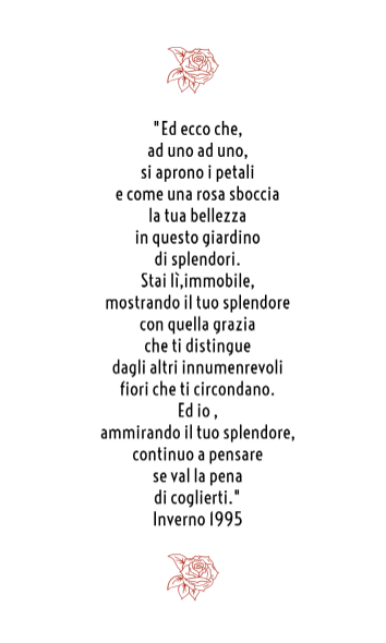 Le mie etichette sono realizzate da me, amo la semplicità, la sobrietà e un po’ d’eleganza. Ho scelto la rosa come simbolo della mia avventura perché per me rappresenta la mia poesia, la mia prima lirica usa una rosa come figura poetica.